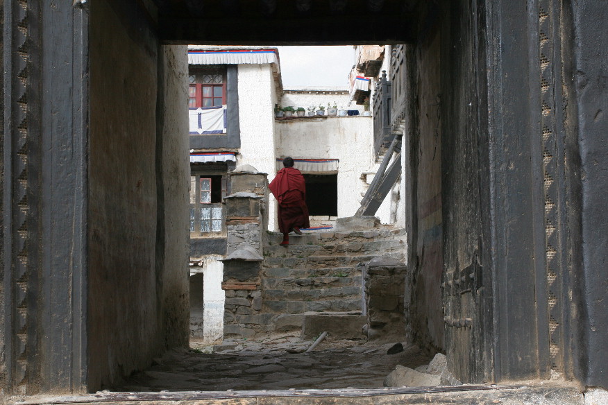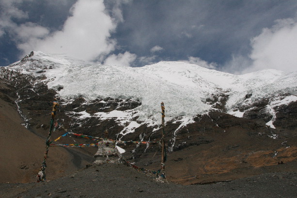 羊湖与雅江之间是拉轨岗日山,其主峰为宁金抗桑峰——汉语意为“夜叉神住在高贵的雪山上”,海拔7206米,就凌驾于圣湖之上。可惜由于阴天,没有看到。宁金抗桑峰的终年积雪发育了数量众多的冰川,其南麓的卡若拉冰川末端一直延伸到公路边不足300米的地方,由于它的慷慨延伸,我们可以毫不费力地在路边一睹其雄伟的身姿。