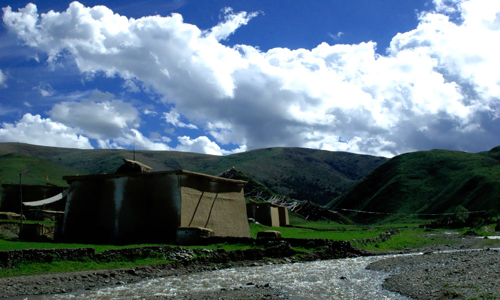 一朵格桑花在阿曲河的岸边悄然开放。生活的亮点、静夜的尖叫、阿坝镇街头廊玛厅里舞台的光芒以及那些神话故事中的高潮,都在这格桑花淡淡的香气中安静了下来。宽阔而神秘的阿曲河谷,跟随这格桑花的脚步走进了春天的童话。在轮回的长廊里,格桑花属于艺术还是时间?我们无法回答。无名的风暴吹裂了干旱的河谷,阿曲河水的怒吼激荡着漫天的乌云,格桑花点燃了苍茫的阿曲河畔的灯盏,照亮了两岸藏寨民居屋檐下一群狂舞的麻雀。野狼循着格桑花的香味,再一次踏上了寻找故园的小路。汁液饱满的夜晚沁润着阿曲河上空远古的天籁。巨大的悲痛车轮一样压过来,碾碎了两岸牧人们温馨的梦境。这个春天,阿曲河就这样散漫地躺在那里。