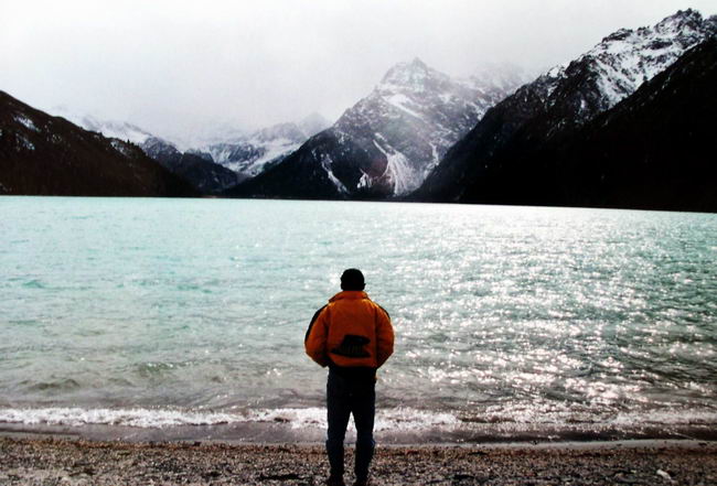 我们在湖畔留影。喝湖里的水。拾湖边的鹅卵石。争论格萨尔王的爱妃珠牡是在这里面洗的头还是洗的澡。