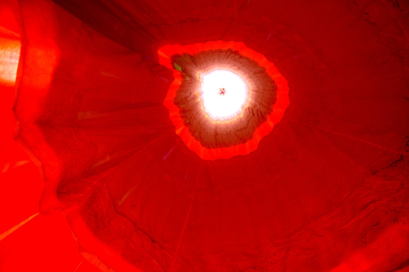 这时, 我抬头看见了一个年纪小小的觉姆背着一个大包糌粑走上坡来, 她看见我, 笑了笑, 用手指了一下山下的大殿就走了, 于是我朝着大殿走去, 发现里面居然布置得如此辉煌华丽, 巨大的幡憧悬挂在大厅, 俨然像是一个艺术的宫殿, 我钻进了一个幡憧, 抬头向上, 阳光透进来, 形成了一美丽的蔓托罗, 我换一个幡憧, 又一个蔓托罗, 一个比一个新奇, 一个比一个神秘, 我在不停的仰望中感觉到一种晕眩, 我的梦开始旋转, 变化, 我在旋转中飞翔, 我的头又开始发胀, 我又开始缺氧了, 这是梦, 还是真的? 我自己也不知道, 如果是现实, 我会怀疑, 如果是梦, 我会更加相信眼前的一切, 亚青寺, 在短短的二十年里一跃成为康区,藏区最有影响力的寺庙之一, 一定有她的神奇之处, 与其用现代人的眼光来打量或错误地评论她, 还不如让她在梦境里继续保持那种神秘的光芒和模糊, 这里的许多事情, 看上去比我们所处的物质世界落后, 但他们在精神上绝对超前于我们许多许多, 这里的许多道理, 也许我们永远也不会理解, 不会懂得。